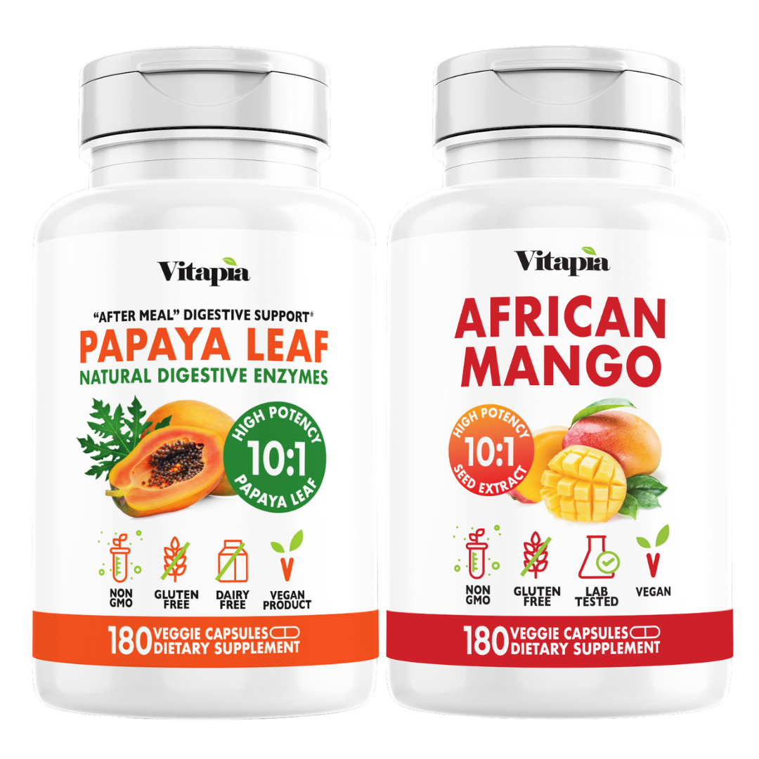 Take 2 veggie capsules of African Mango & 3 veggie capsules of Papaya daily with meal and at least 8oz of water, or as recommended by a licensed healthcare practitioner.