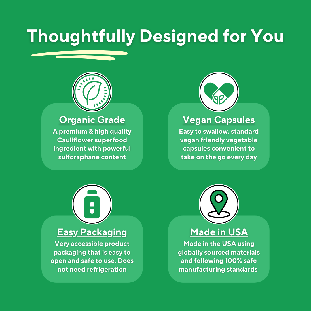 Cauliflower is manufactured at a FDA-registered and cGMP compliant facility to ensure product consistency and safety.