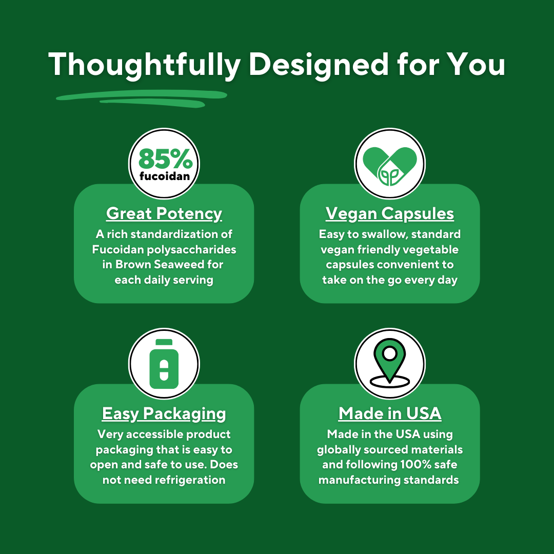 Fucoidan 85% supports: immune health, cellular activity, and healthy aging.*