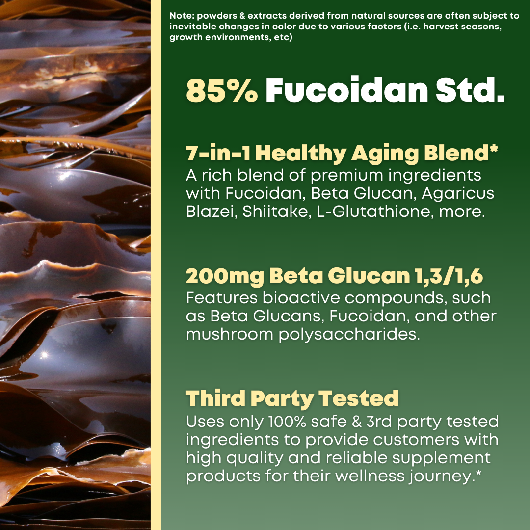 Beta Glucan & Fucoidan supports: healthy aging, immune responses, and gut health.*