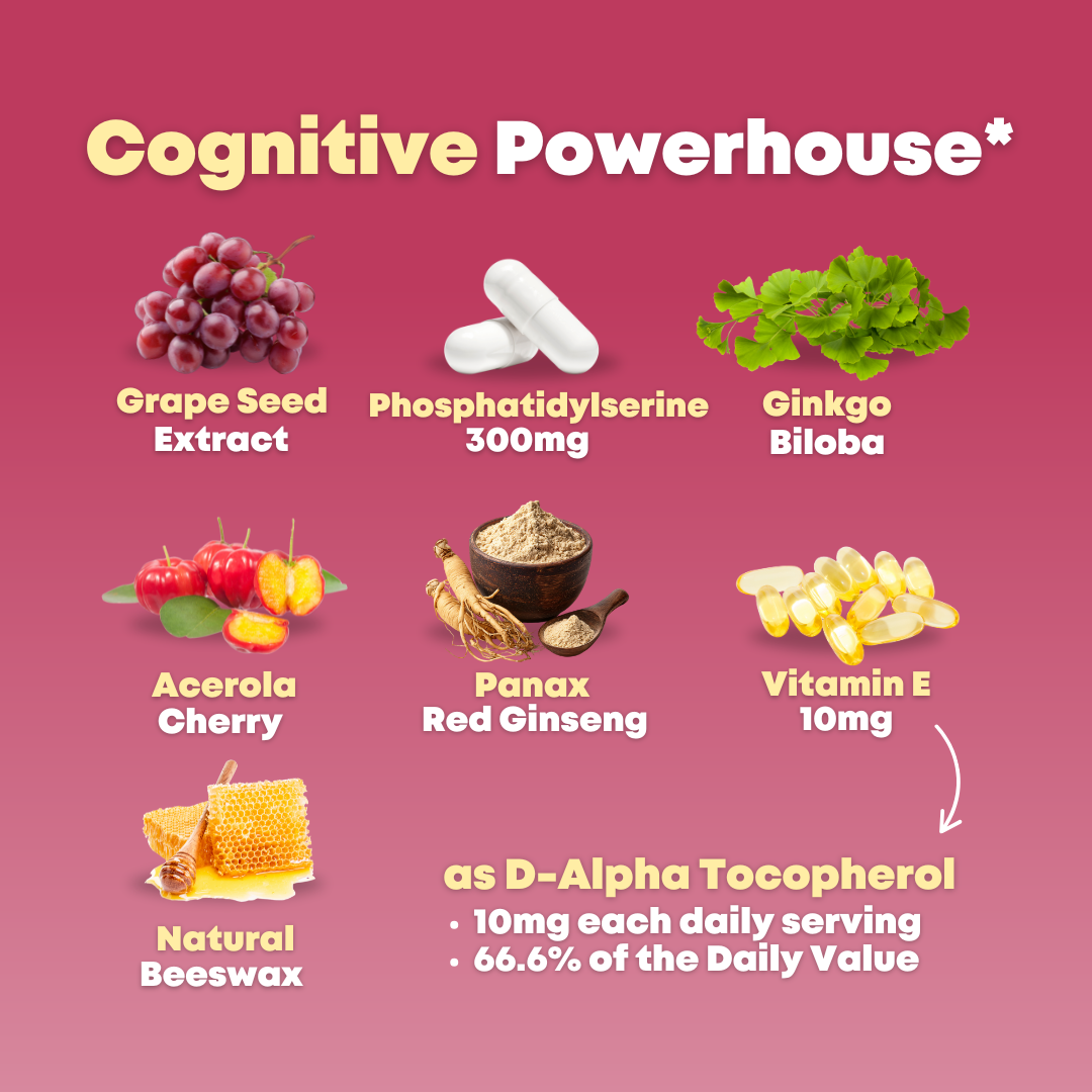 Neuro Focus supports: brain health, healthy aging, and cognitive functions (i.e. memory, focus, mental clarity, etc).*