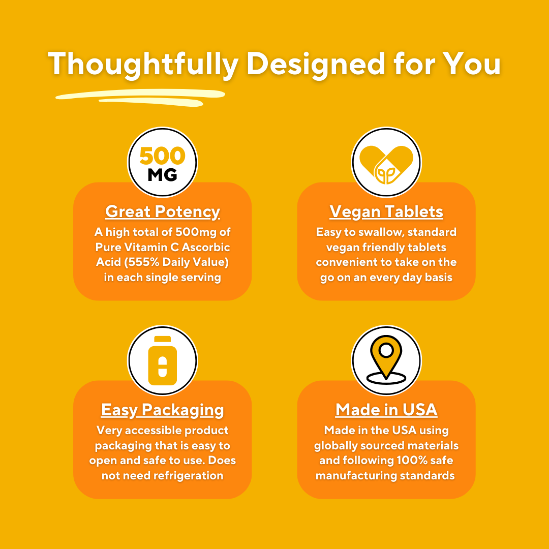 You can make the most out of your Vitamin C intakes by combining our supplement with a relatively healthy diet, daily hydration, and consistent exercises.